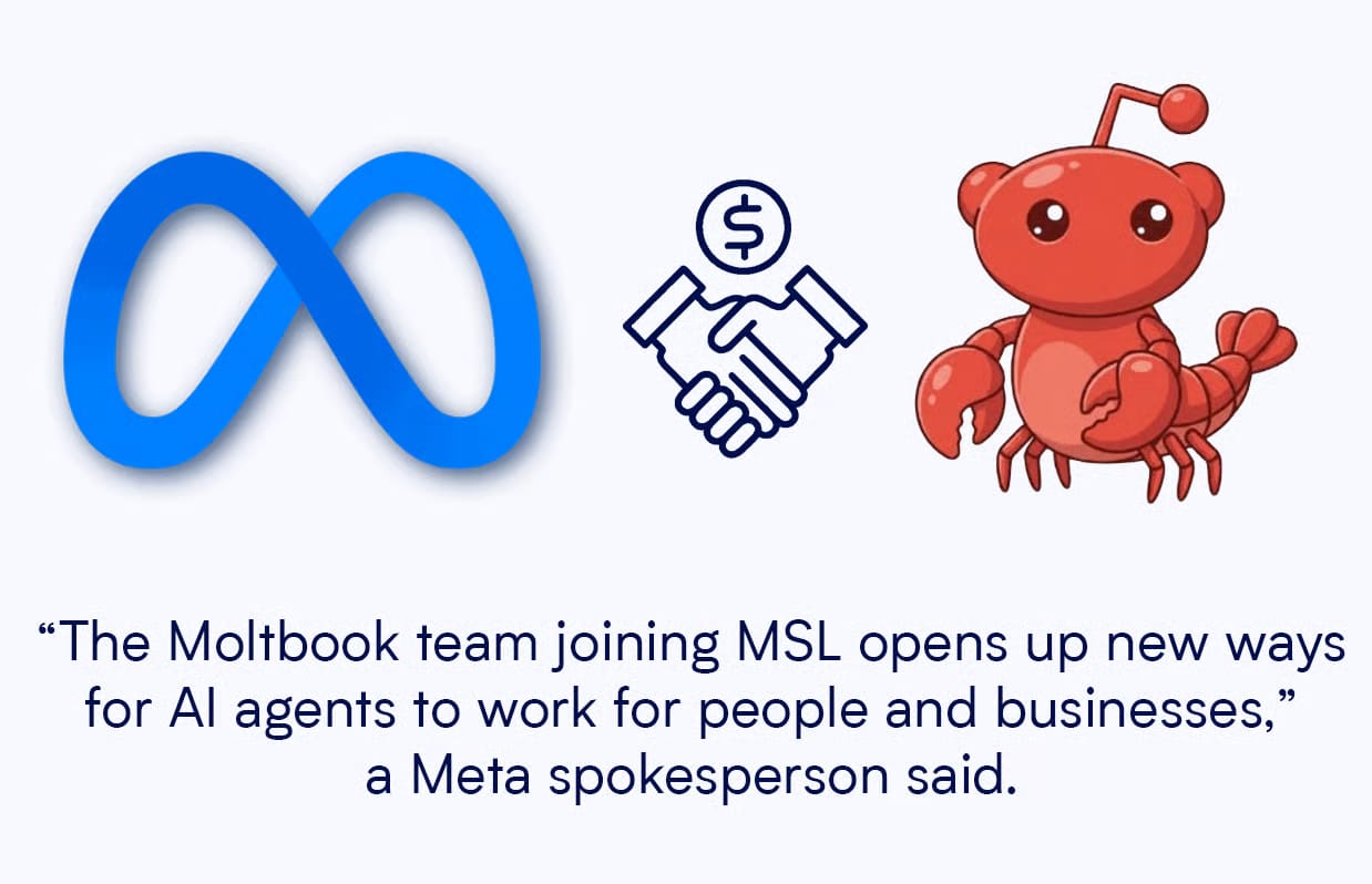 According to Meta's Vishal Shah: "The Moltbook team has given agents a way to verify their identity and connect with one another on their human's behalf. This establishes a registry where agents are verified and tethered to human owners."