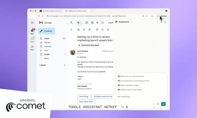 You have Gmail (or another web email) open and want help cleaning up your inbox. Use Comet Browser to find unanswered Emails & draft replies by leaning on Comet to do the triage, then you just review.
