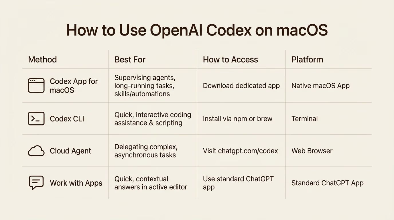 The bigger deal is the workflow change. Instead of sitting in a chat window watching an AI write code line by line, you assign tasks like a manager delegating to a team. The Codex app syncs context between the CLI, VS Code extension, and desktop app, so you can start a task in your terminal and pick it up on the desktop.